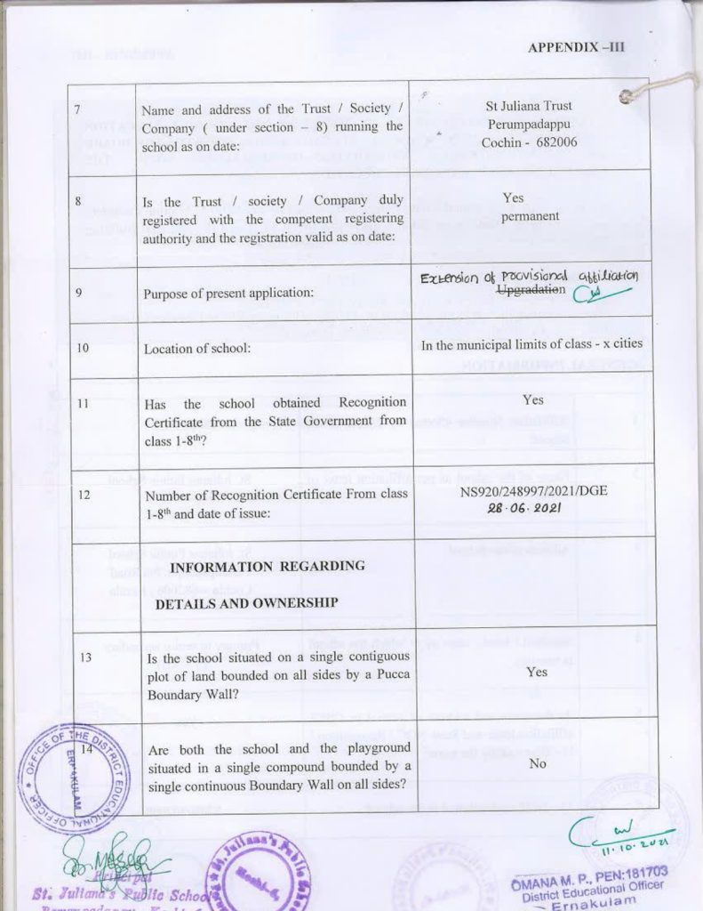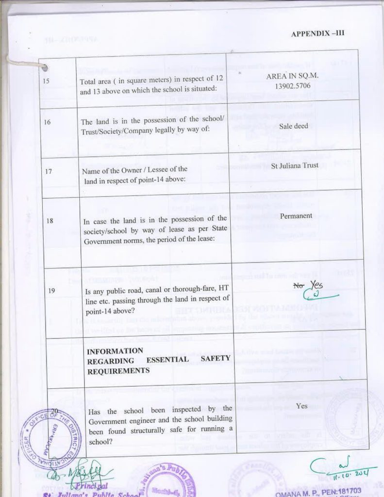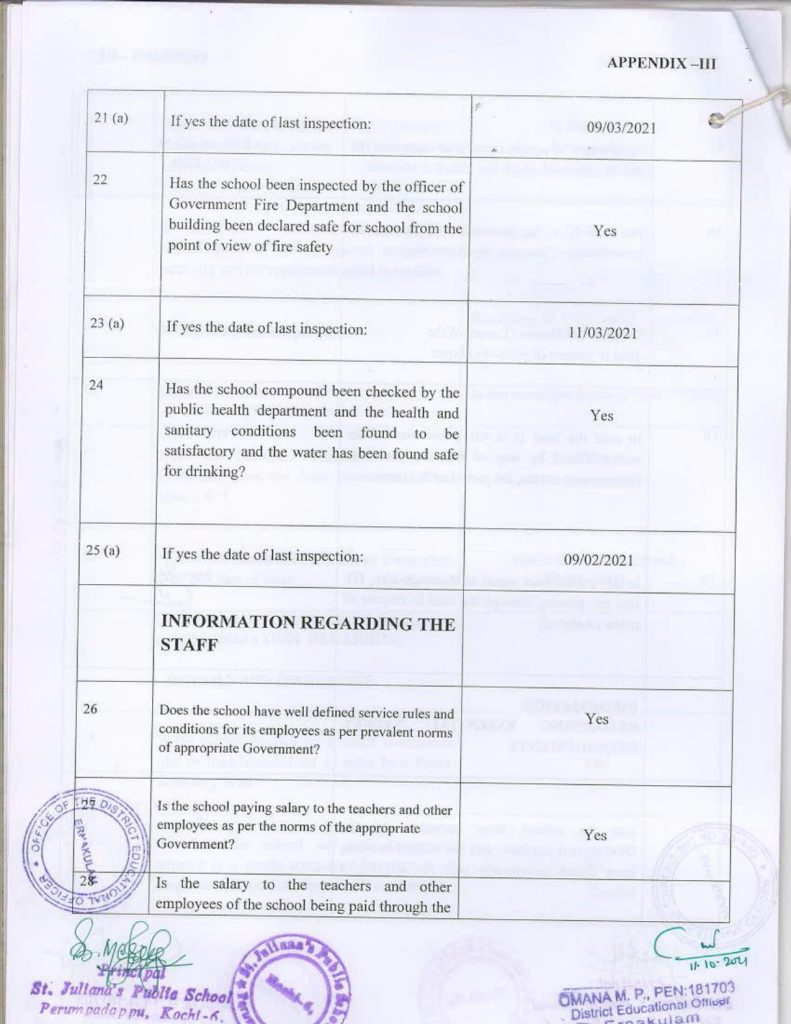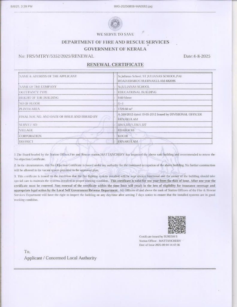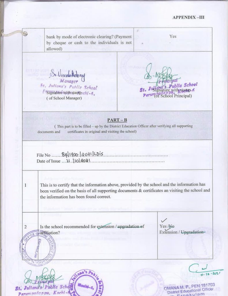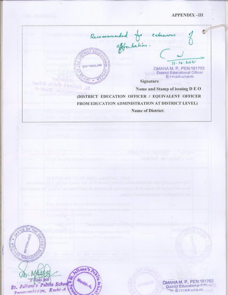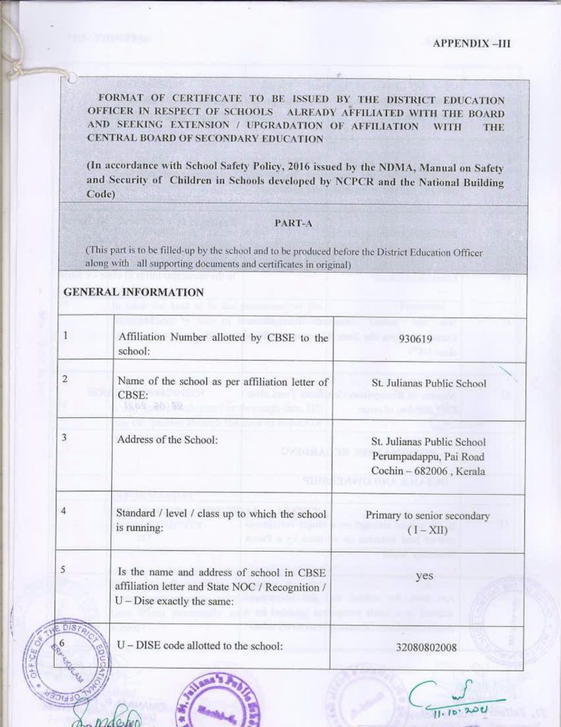 Mandatory Disclosure Building Safety Certificate Fire & Safety Certificate Health & Sanitation Certificate Transfer Certificate Teacher’s Training Programme Water Certificate Copy of the self certification submitted by the school for Affiliation