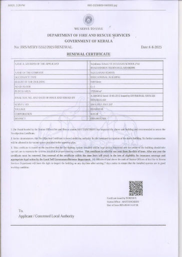 Mandatory Disclosure Building Safety Certificate Fire & Safety Certificate Health & Sanitation Certificate Transfer Certificate Teacher’s Training Programme Water Certificate
